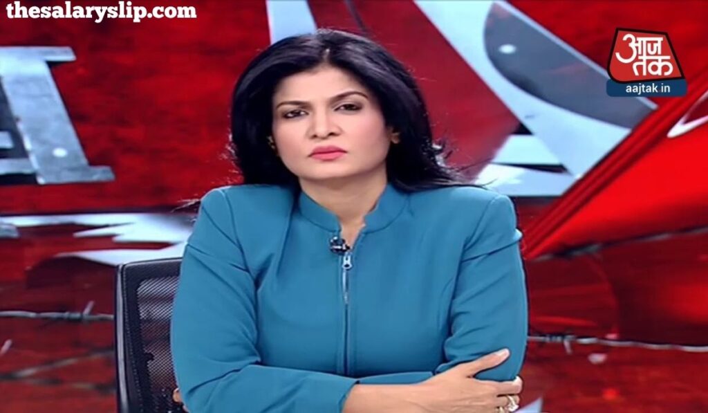 - Position and responsibilities: She is not just an anchor but also a senior editor/executive editor at the channel ‘Aaj Tak’-one of the top Hindi news channels. More responsibility, of course, more money.